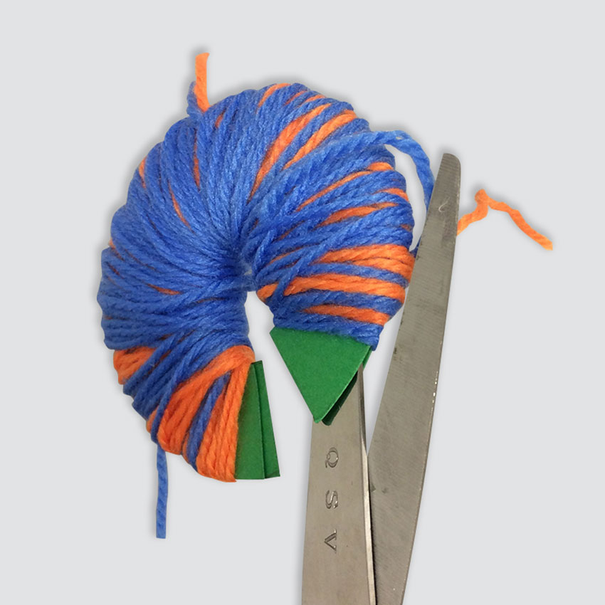 • Step 8Use scissors to trim around the edges to get that nice circular shape! Make sure you don't cut the 2 long pieces of wool.