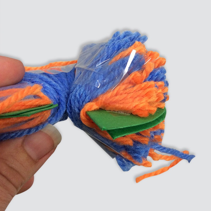 • Step 3Cut 6m of blue Soft Yarn Wool and wrap around the orange wool.
