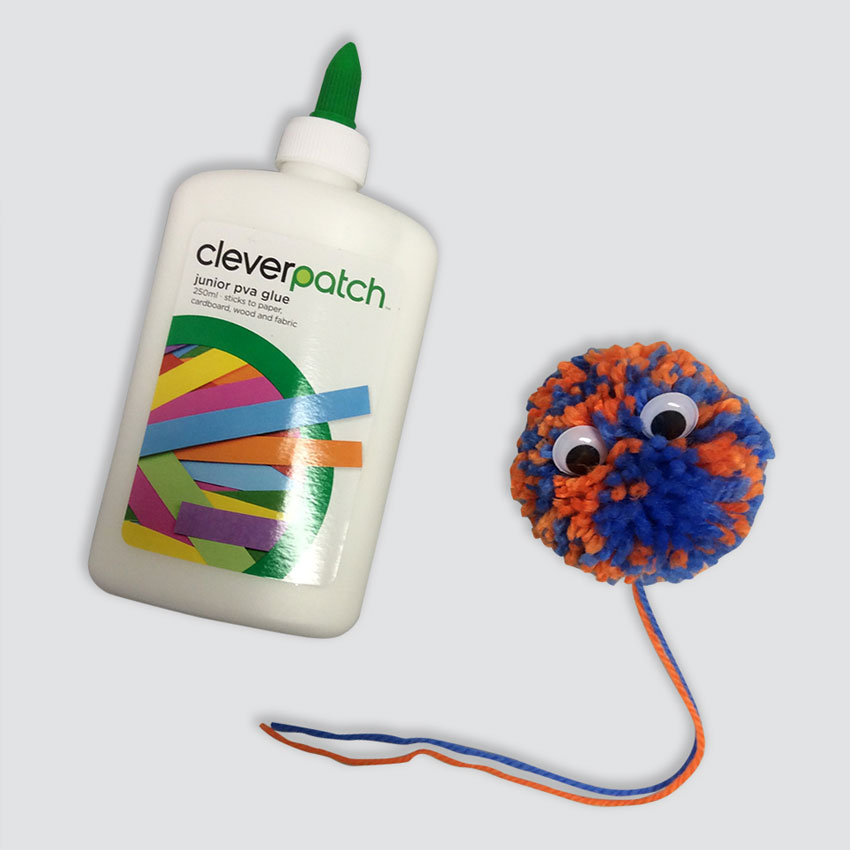 • Step 9Attach some wiggles eyes to your pom pom using CleverPatchâ„¢ Junior PVA glue. Allow to dry. Your Pom Pom Bookmark is now ready to use!