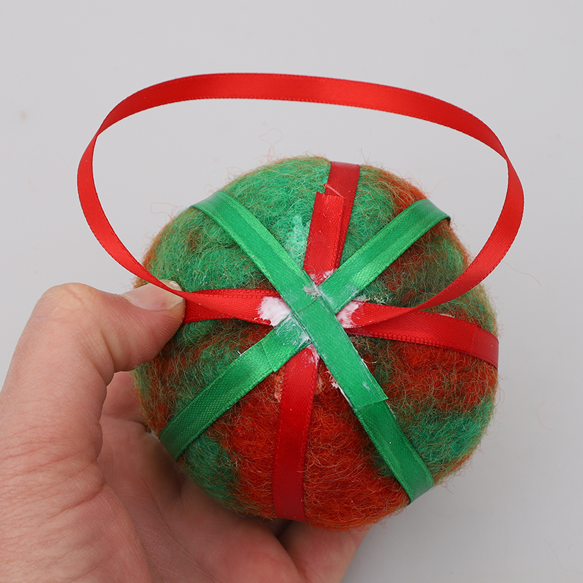 • Step 9Your Retro Wet Felted Christmas Bauble is now ready to hang!