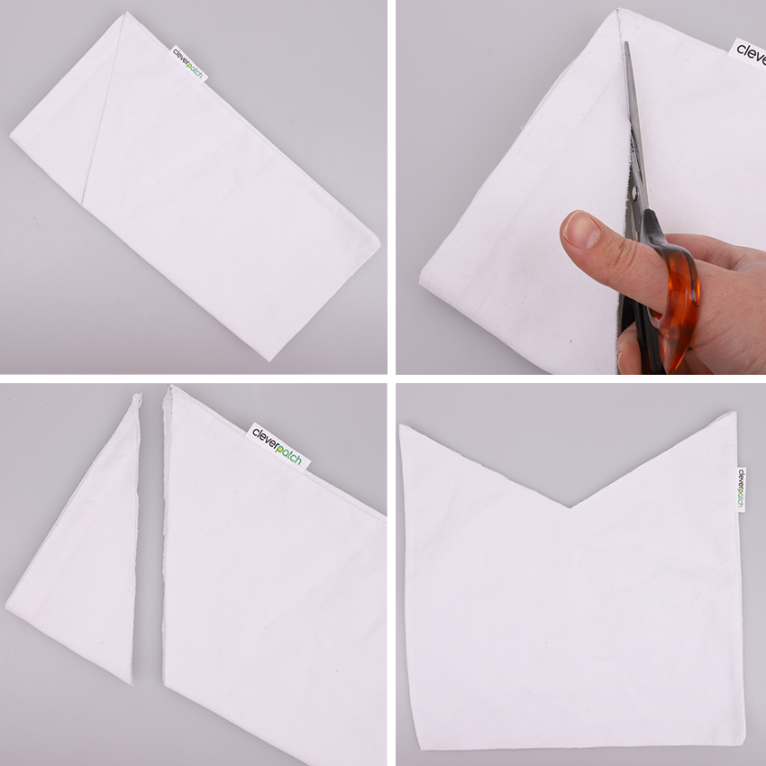 • Step 2Fold the bag in half vertically, with the bag opening positioned at the top. With the folded edge on the left-hand side, rule a line in pencil from the top right corner to approximately 10cm down the folded edge. Use scissors to carefully cut down this line then open the bag up.