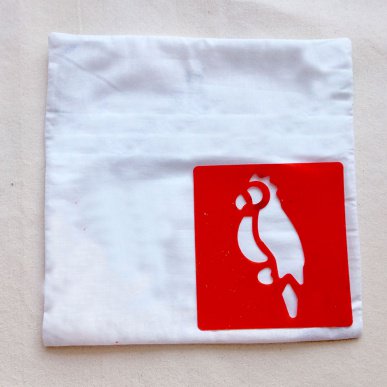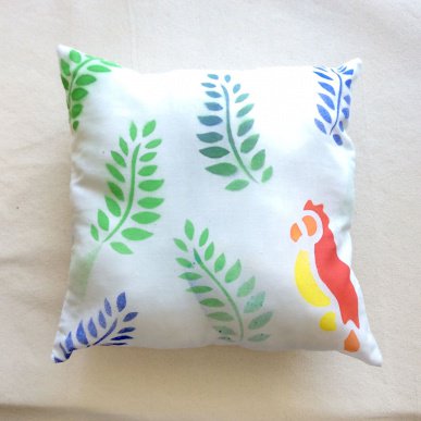 Search terms: pillow, pillowcase, bedtime, parrot, leaf, leaves, fabric paint, fabric spray.