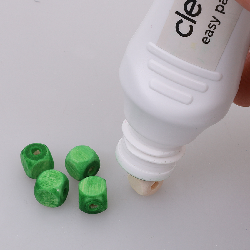 • Step 1Start by working out what message you would like to create on your keychain. Gather enough beads to spell out the message and decide which Easy Painter colour (if any) you’d like the beads to be. Apply the chosen colour to the beads by dabbing the painter sponge onto each side of the bead. You can also leave some or all of the beads natural if you prefer. Allow to dry if needed.