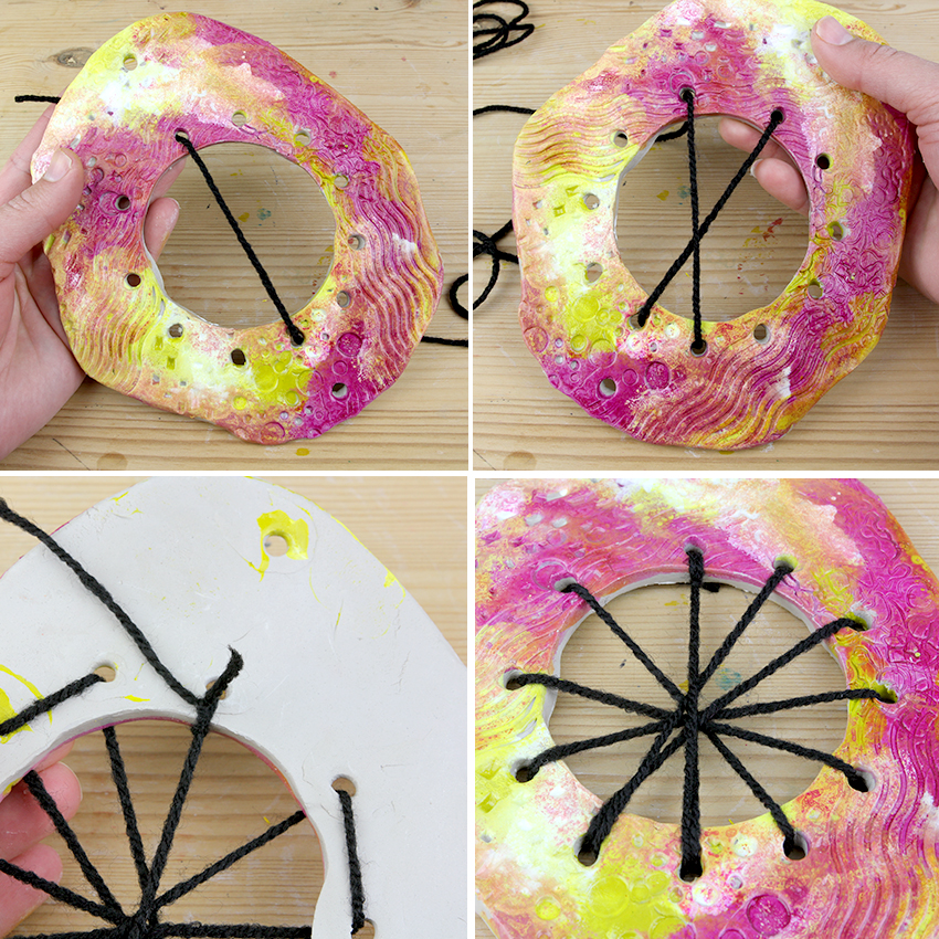 Combine your modelling and weaving skills to create a beautiful hanging clay weaving frame!