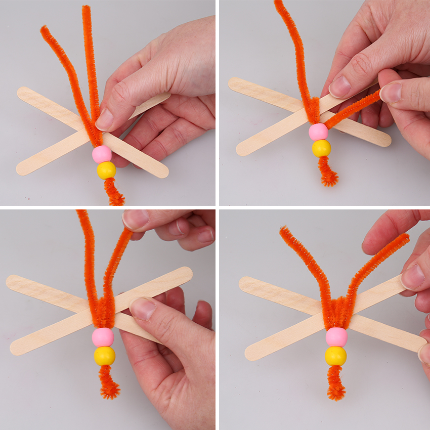 • Step 5Bend the ends of the chenille stem into curly antennae.