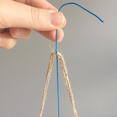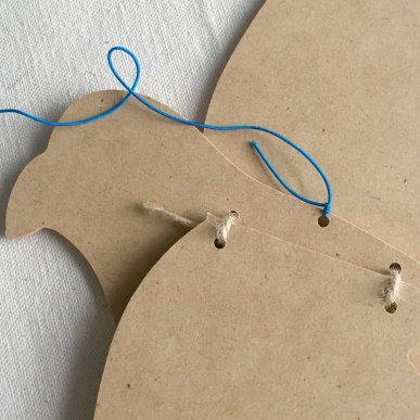 • Step 3Thread your 25cm piece of jute twine through the holes lining up on the right side and then back through the holes lining up on the left side. Tie firmly to secure.