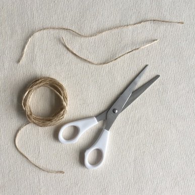 • Step 1Cut 3 pieces of jute twine; one 25cm long, one 15cm long, and one 3.1m long.