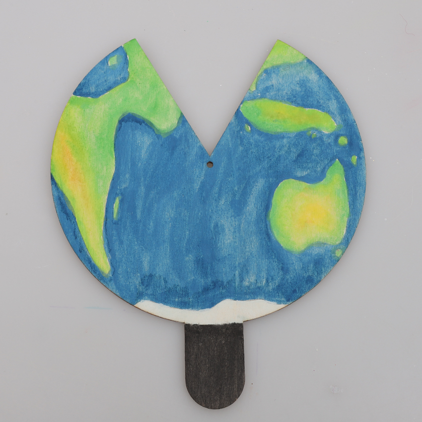 • Step 8Ensure the handle of the top piece of the story wheel is at the bottom and decorate it to resemble the Earth. It doesn’t have to be accurate as this will be your own artistic representation! Decorate your design using watercolour paint. Allow to dry.