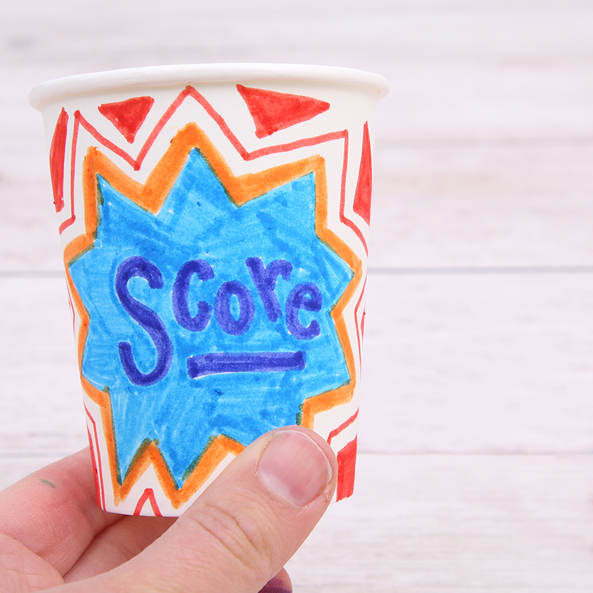 • Step 7Decorate a paper cup using coloured markers. This will be the goal for aiming the chenille stem balls into.