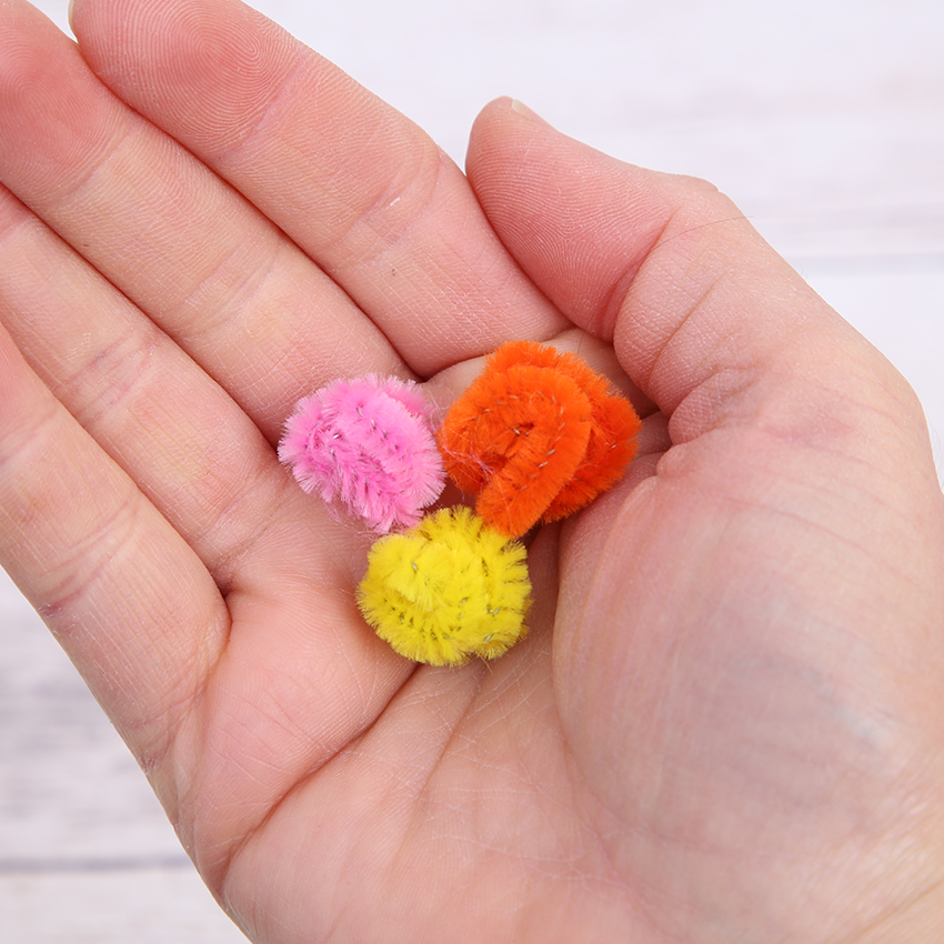 • Step 6Cut some pieces of chenille stem and roll them into little ball shapes. Adult supervision is recommended when using scissors.
