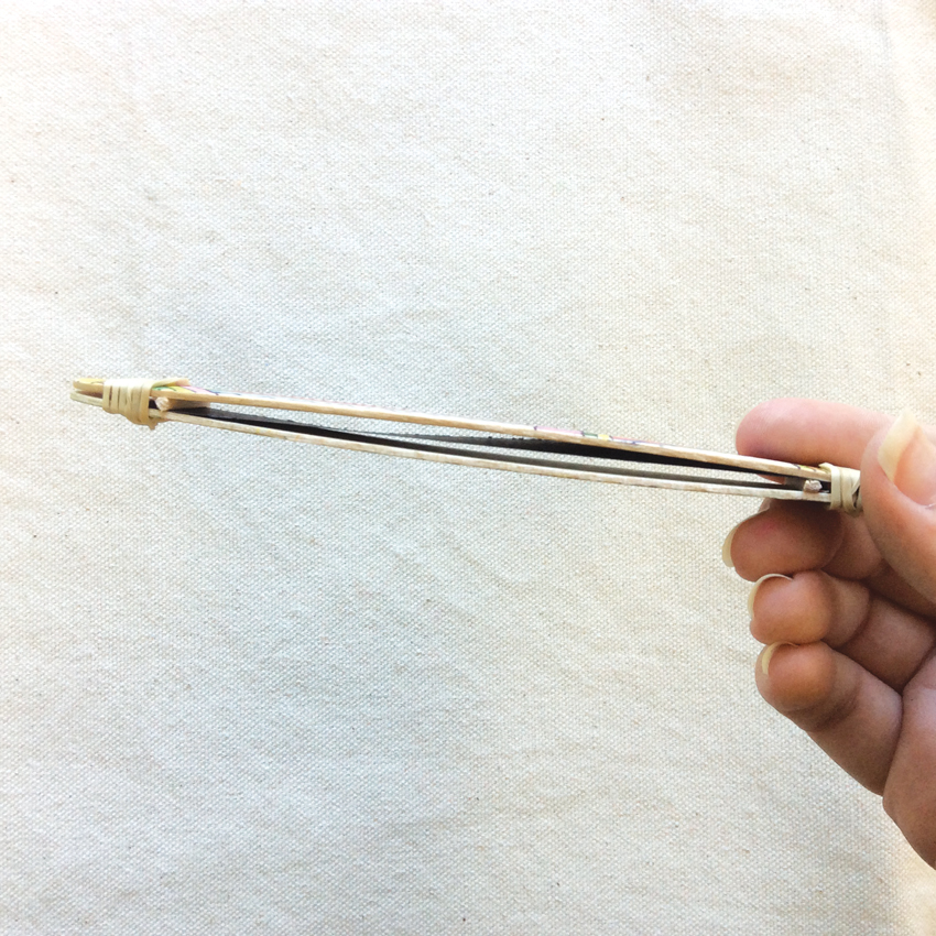 • Experiment with the rubber bands to see how they affect the sound. Loosen or tighten them, then try blowing softly or hard to see how the pitch is effected! Now you are ready to make some music!