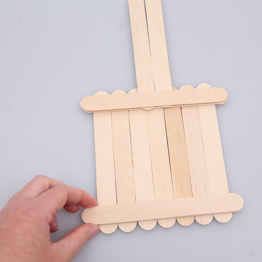 • Step 1On a flat surface, lay 7 popsticks down vertically. Lay 1 popstick across the top and 1 across the bottom horizontally. Glue in place and allow to dry.