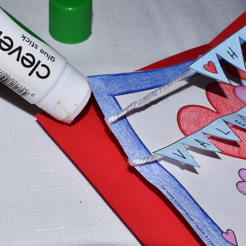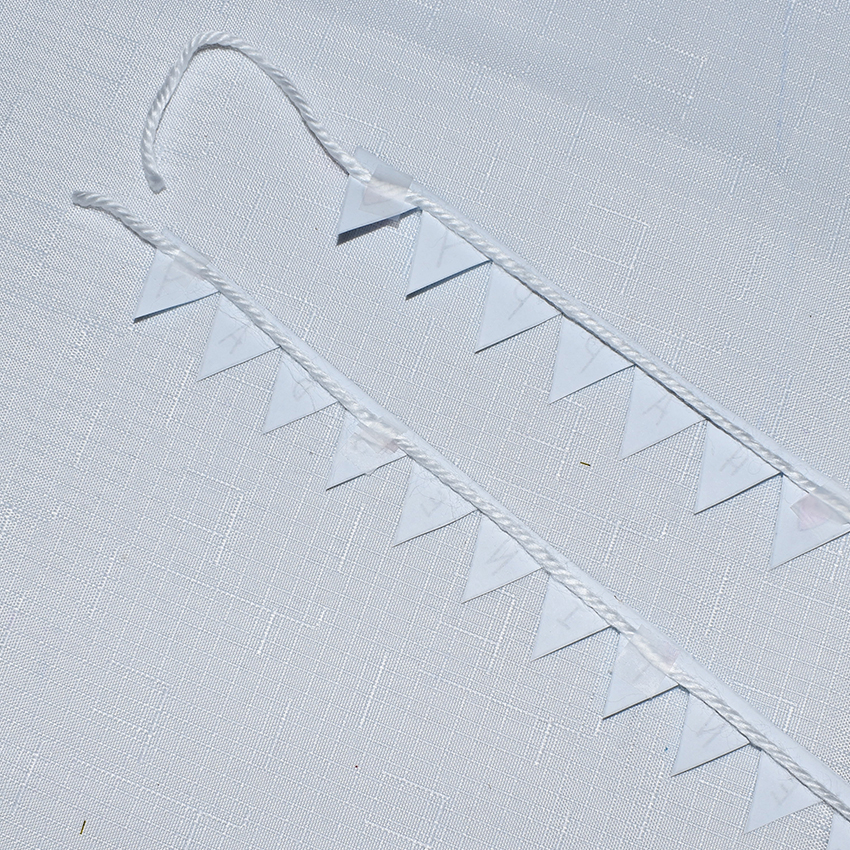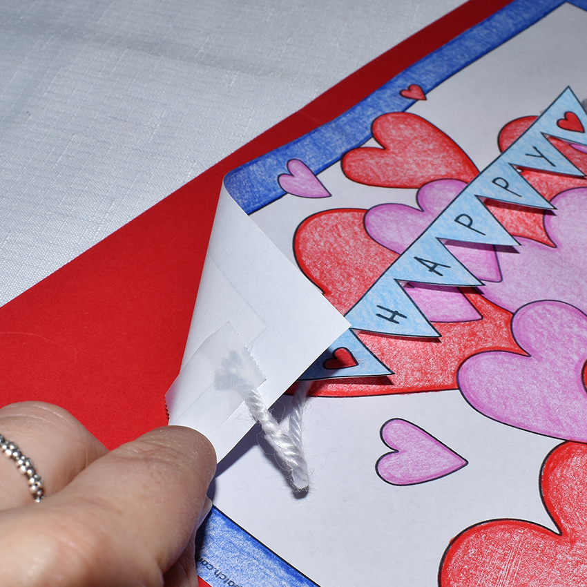• Step 2Cut 2 pieces of yarn each measuring 29cm long. Use sticky tape to attach a piece of yarn to the back of each of the bunting pieces. This will help hang the bunting inside your card.