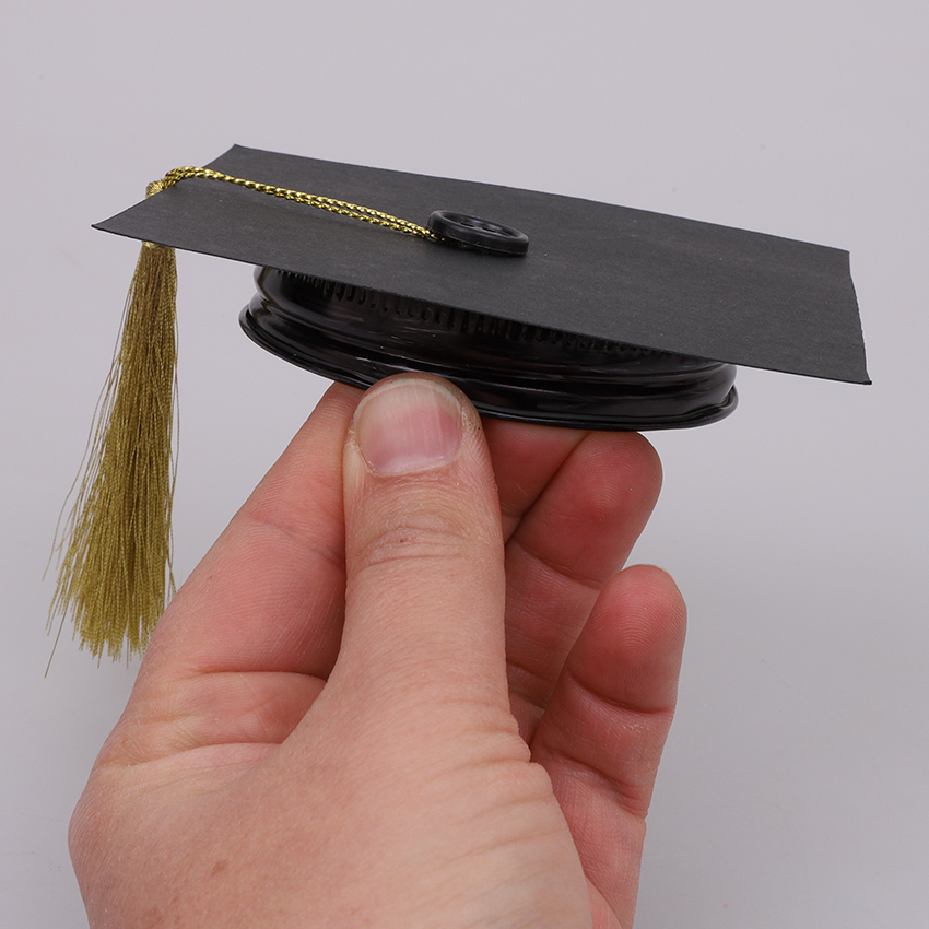 • Step 3Glue the graduation cap on top of the lid for your jar. Allow to dry
