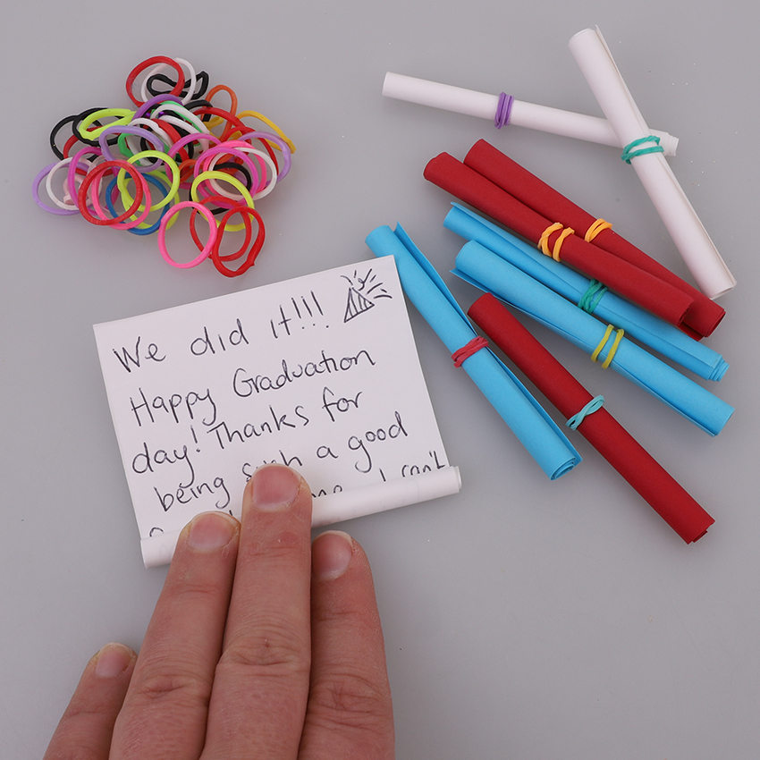 • Step 7Roll each of the messages up to form a scroll and secure with a loom band.