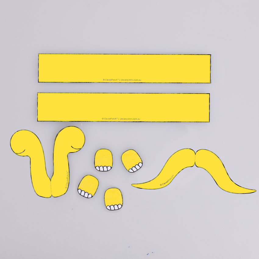 • Step 3Cut out the dinosaur template pieces and two rectangle stand shapes. Adult supervision is recommended when using scissors.