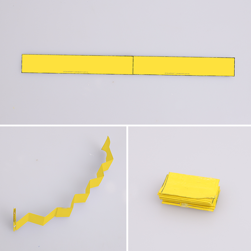 • Step 4Using a glue gun, glue the short ends of the two rectangles together. Adult supervision is recommended when using a glue gun. Allow to dry. Accordion fold along the rectangles. Glue all of the folds together and allow to dry. Using a glue gun will help add weight and this will become the stand for your pine cone.