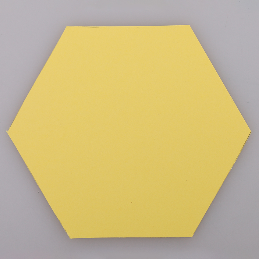 • Step 1Print and use the template provided to cut out one hexagon from yellow cardboard. Adult supervision is recommended when using scissors.