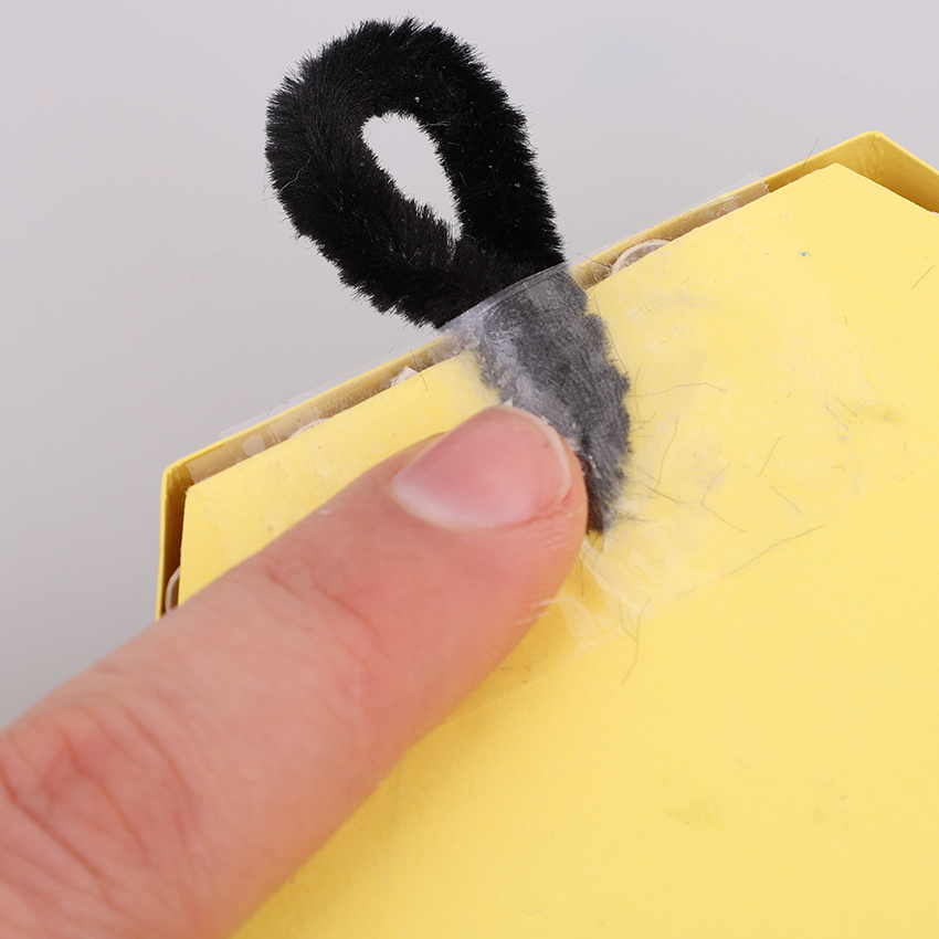 • Step 6Cut a 10cm length of chenille stem and bend in half to create a loop. Twist the loose ends together firmly and add to the top of your honeycomb, taping it in place at the back.