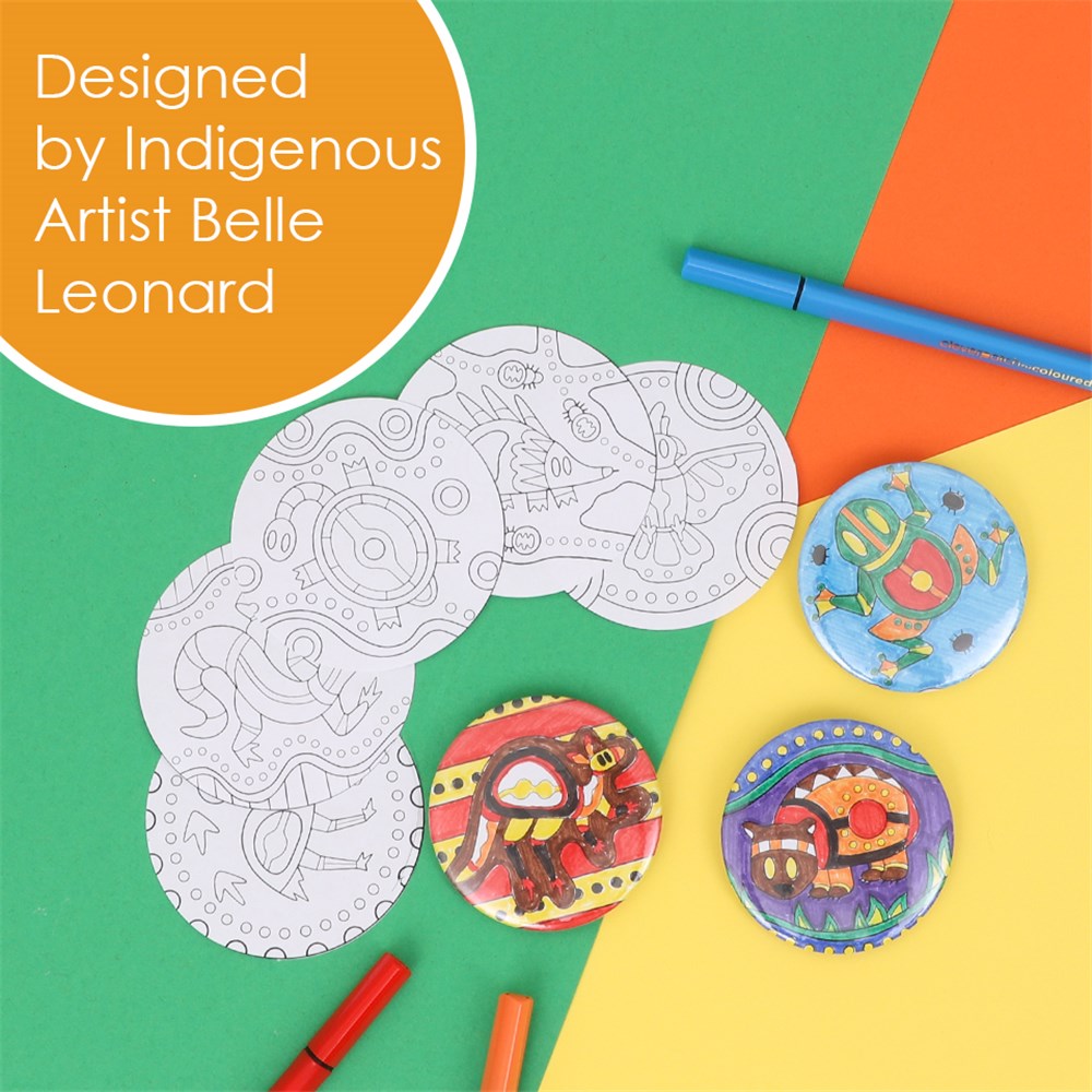 Add some flare to our Design Your Own Badges range with our templates, designed by Indigenous Artist Belle Leonard. Just print, decorate and use with our Badge Making Machine and components to create an amazing badge!