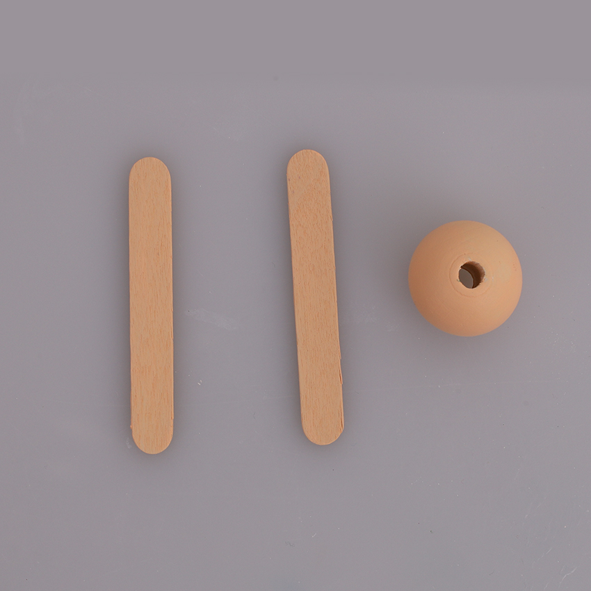 • Step 3Mix a small amount of yellow, red and blue with white paint to create a skin tone. Adjust the amount of each colour as needed to create your desired skin tone. Paint two mini popsticks and a large wooden bead using this paint mixture. Allow to dry.