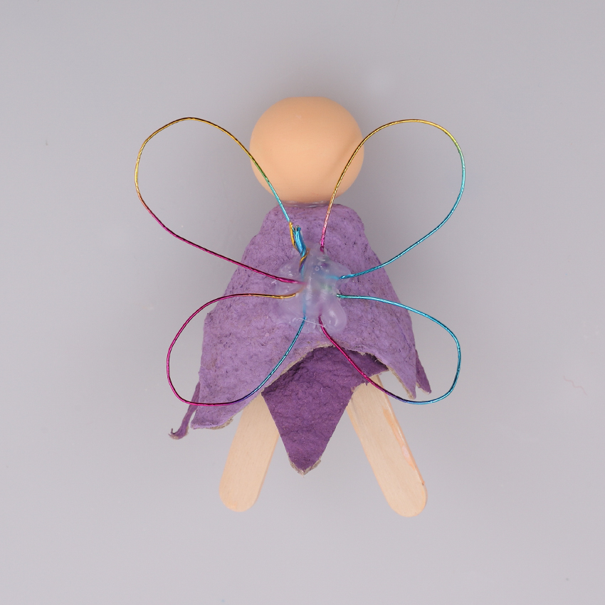 • Step 7Glue the wings to the back of your fairy’s body. Allow to dry.