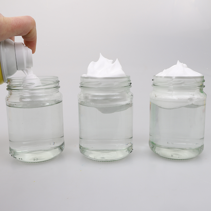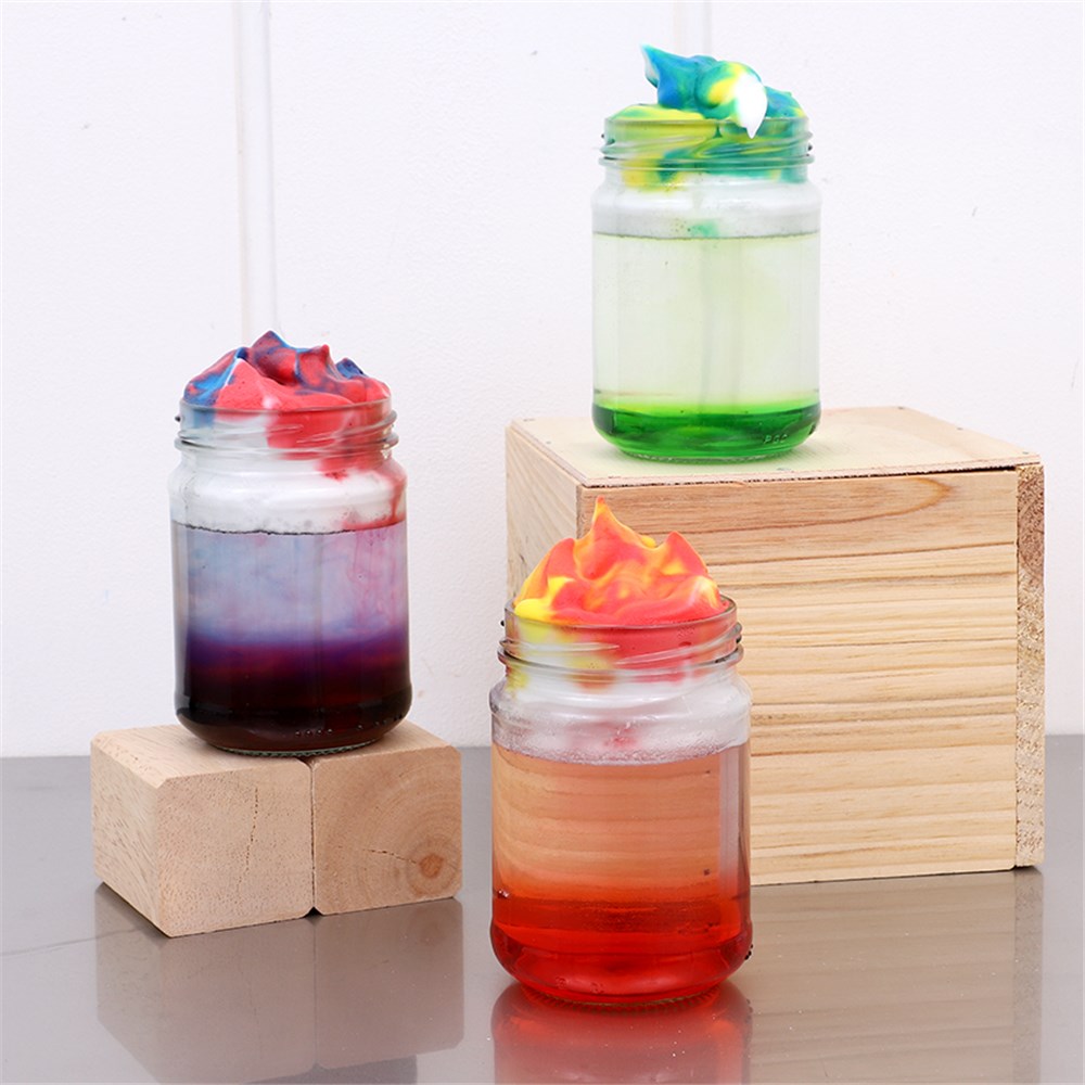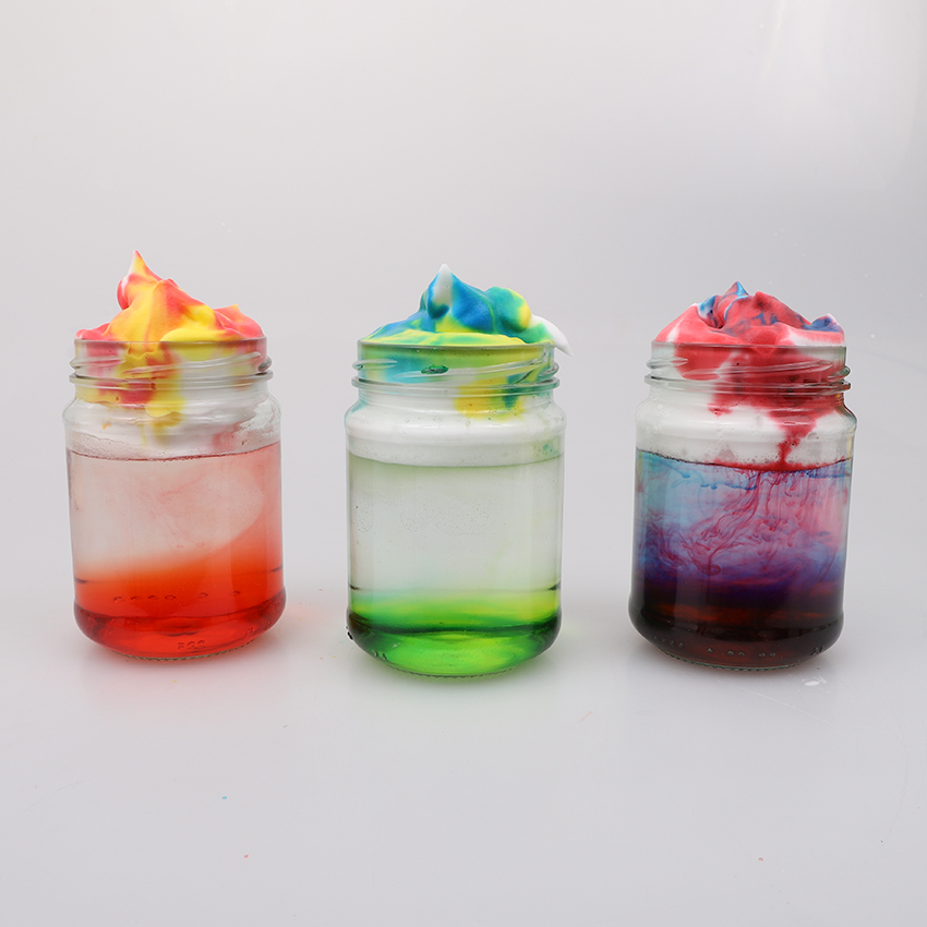 • Step 2 Add a squirt of shaving foam on top of the water of each jar to create big fluffy ‘clouds’.
