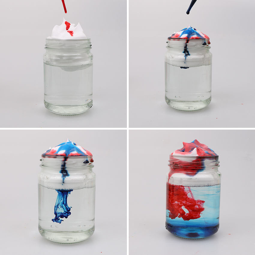 • Step 3 Use a pipette to drop different colour combinations of coloured dye on top of the shaving cream. Watch as it flows through the ‘cloud’ and ‘rains’ into the water below.