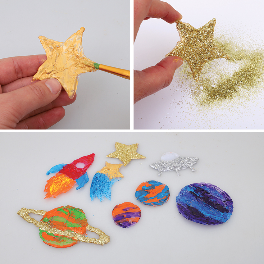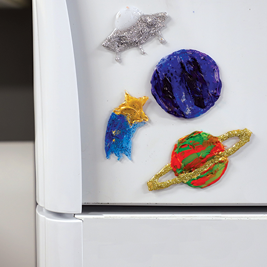 • Step 6Your Glue Gun Space Magnets are now ready to pop on your fridge!