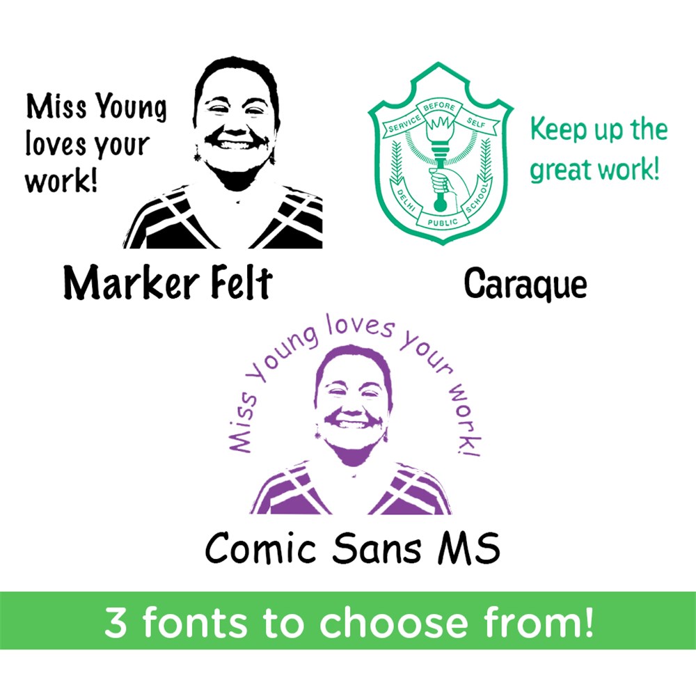 This CleverStamp will make you the envy of every educator! Supply a photo and personalised text and we will turn it into your very own custom stamp. The possibilities are endless you could include a school logo, photo of yourself or your teachers at school, or create the stamp you have always dreamed of and never been able to find anywhere!
