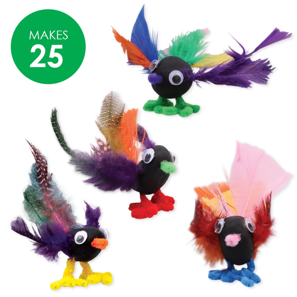 Group pack includes all components required to create 25 Colourful Birds. Measures approximately 11 x 12cm when constructed. Paint brushes and glue are required to complete this activity (sold separately). Contents may vary.