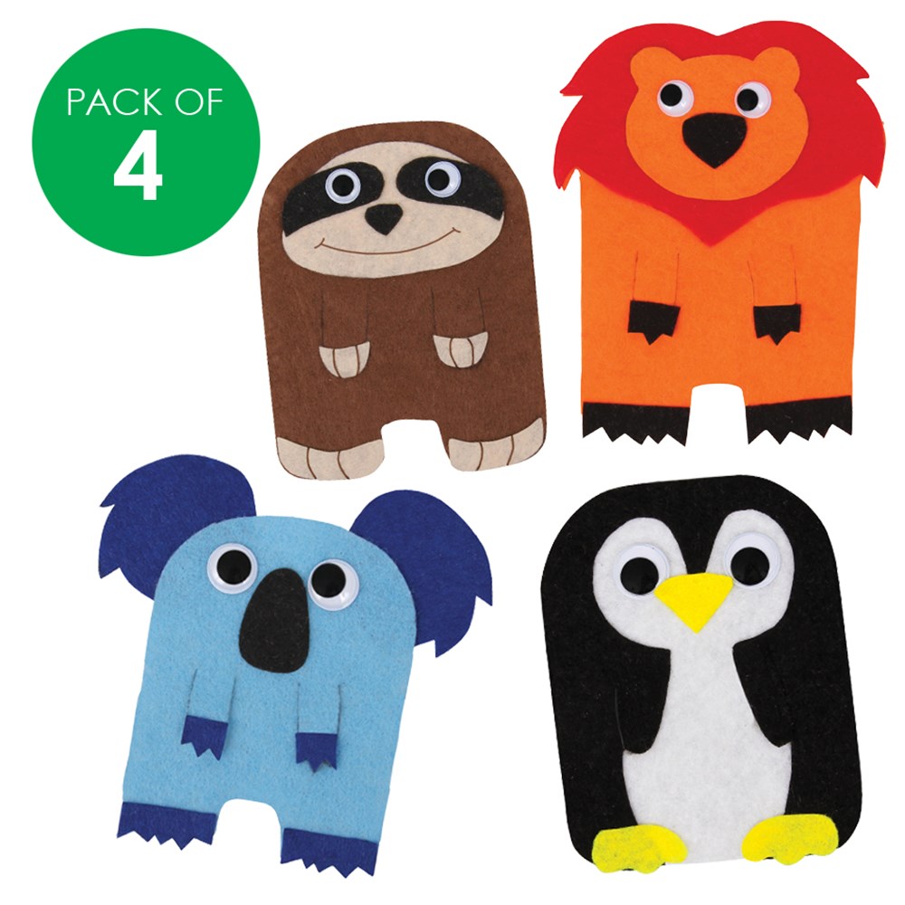 Pack includes all components required to make 4 Felt Animal Bookmarks. 4 different designs. Each bookmark's pieces are individually packed for easy use. Penguin measures 7.6 x 10cm when assembled.