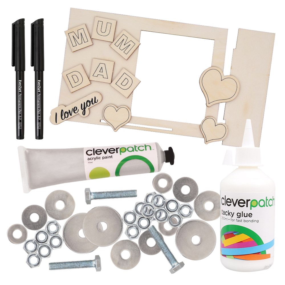 Each frame measures 21 x 5 x 14.9cm when completed and the space for your photo measures 9.8 x 11.4cm. Brushes are required to complete this activity (sold separately). Contents may vary.