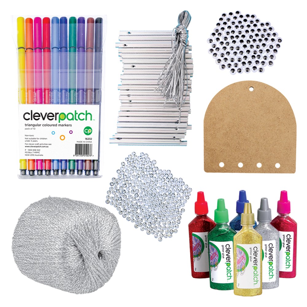 Group pack includes all components required to create 20 Wind Chimes. Measures approximately 8 x 18cm when constructed. Glue and scissors are required to complete this activity (sold separately). Contents may vary.