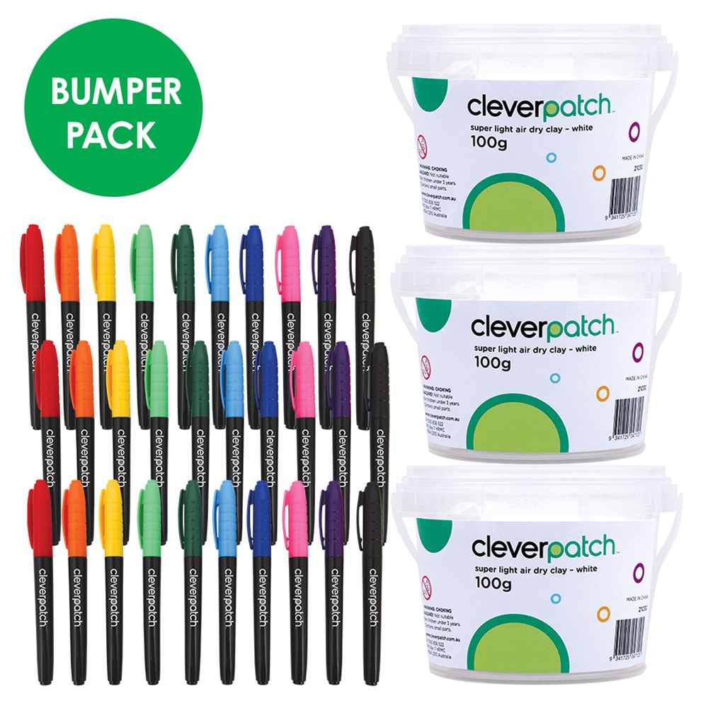 Create your own little characters or sculptures with our Super Light Air Dry Clay Bumper Pack! Simply use the included markers to add colour to the clay before or after completing your sculpture or figurine.