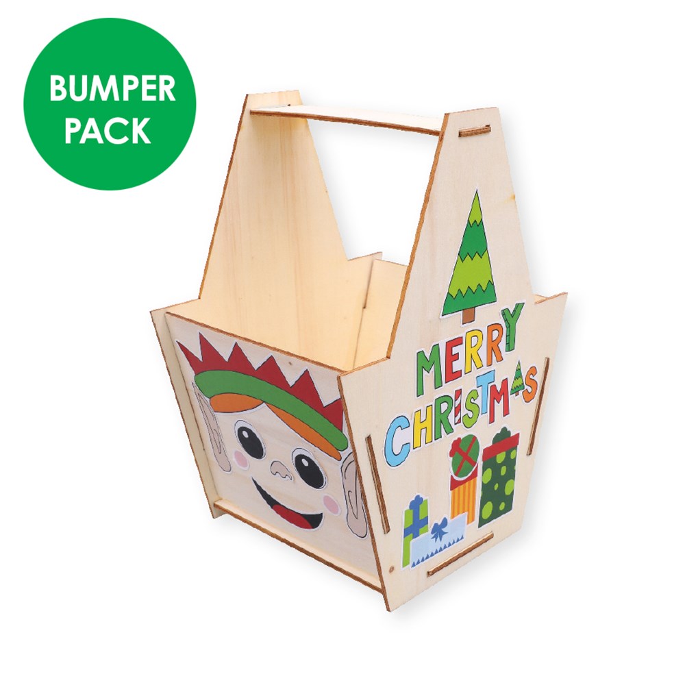 Pack includes components to create 10 Wooden Christmas Character Baskets: