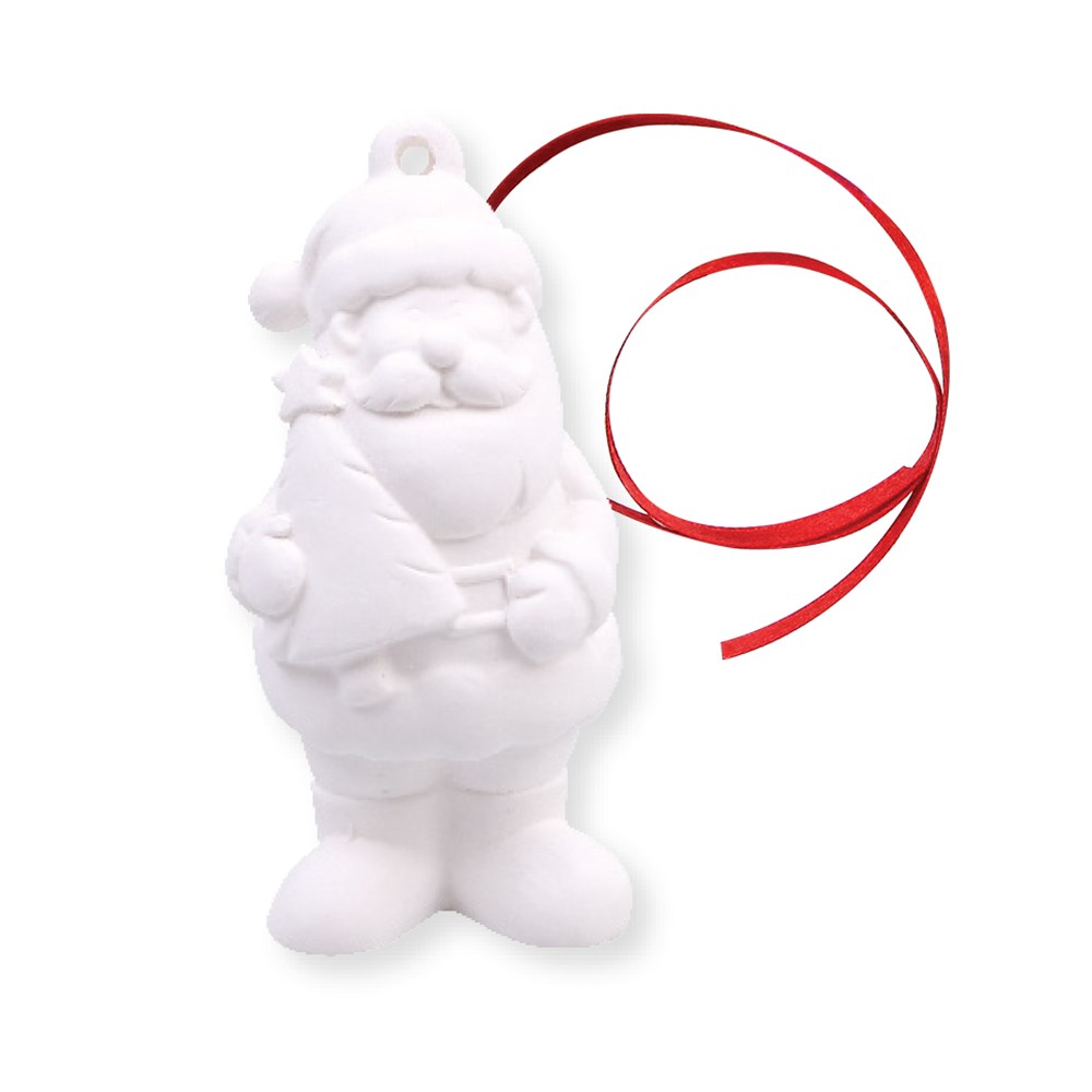 Plain for you to create. Each ornament includes a ribbon for hanging and is supplied in an individual box, perfect for safe handling and gifting. Measures 5.5 x 4.5 x 10.5cm (excluding hanger).