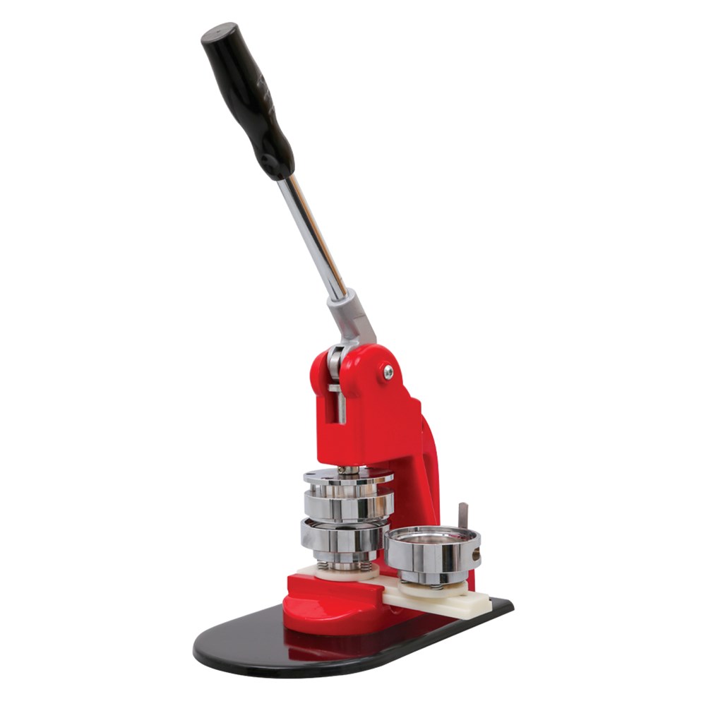 This Badge Making Machine is made from steel and creates 58mm badge designs (components to create the badges are sold separately). Machine supplied in parts for easy self-assembly and measures 29 x 17 x 50cm once assembled.