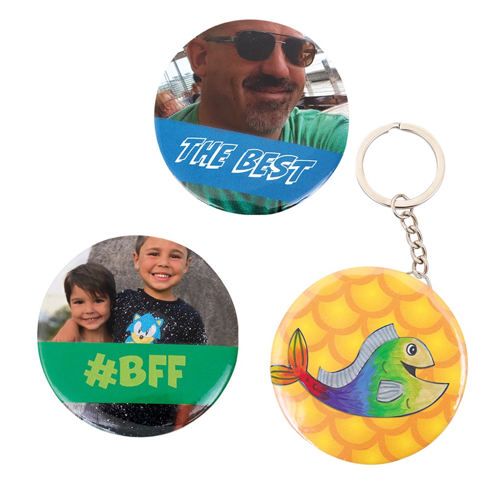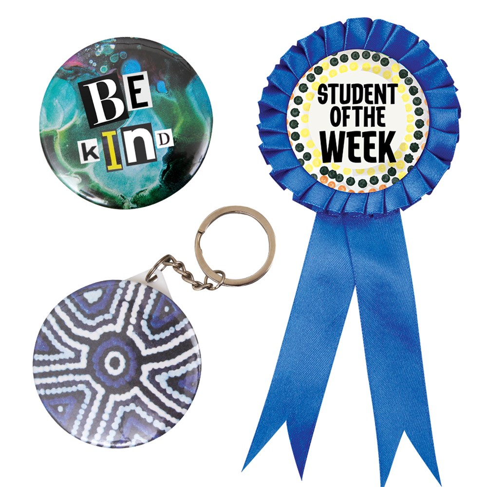 Perfect for use in the classroom or for events and fundraisers - make name badges, keyrings, gifts and more!