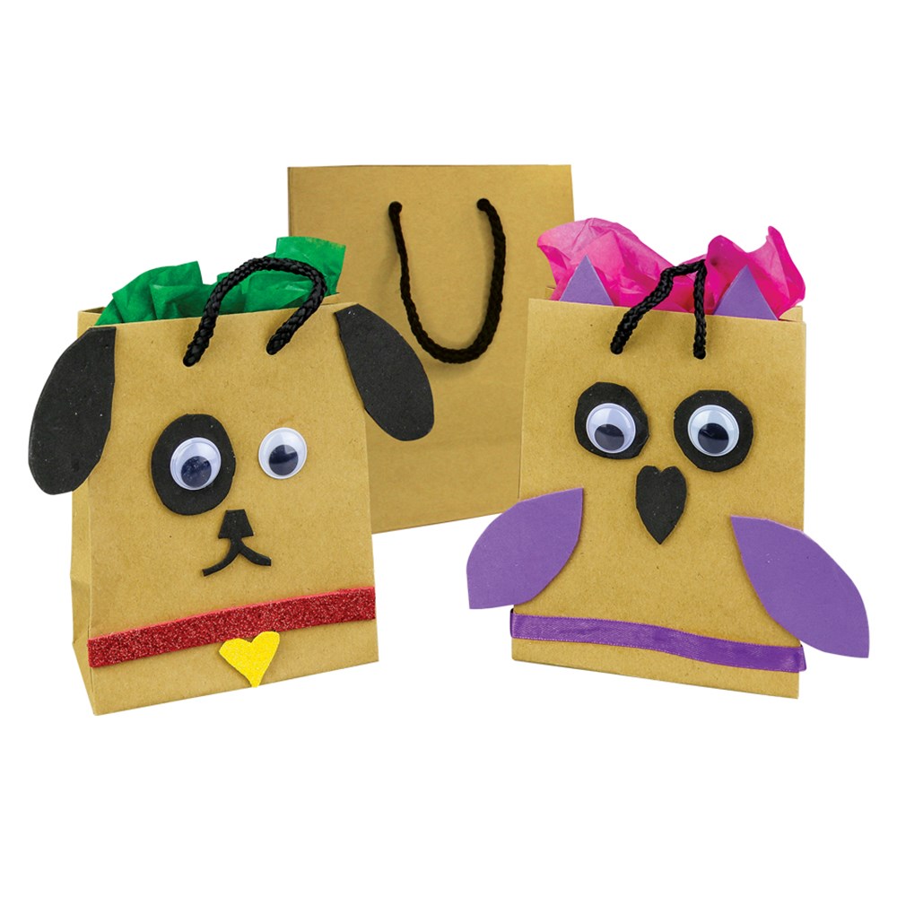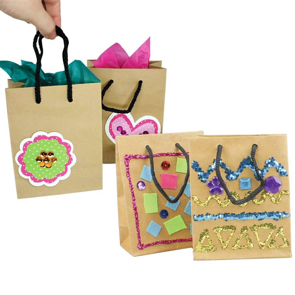 Gusseted small brown paper gift bag with rope handles. Plain for you to create. Gift bag measures 11 x 6 x 14cm.