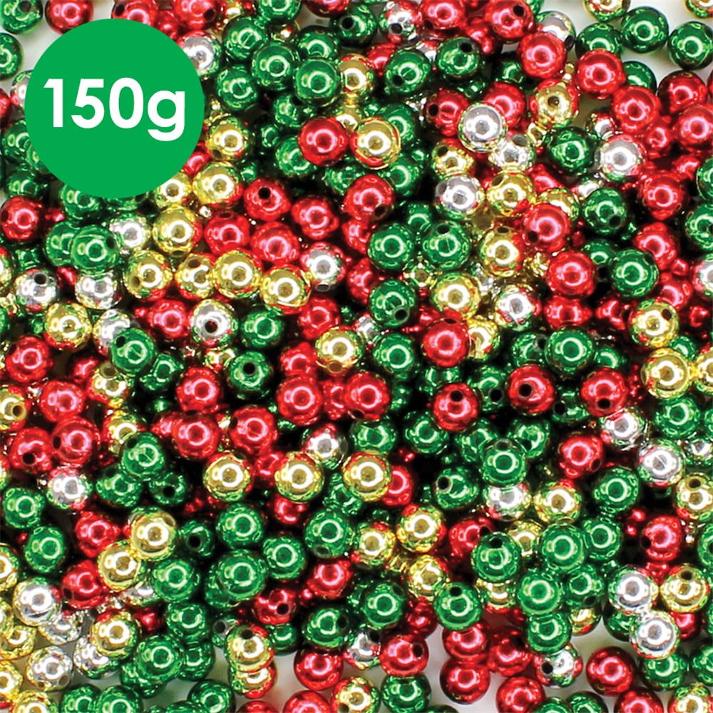 Approximately 580 pearl beads in assorted metallic Christmas colours.