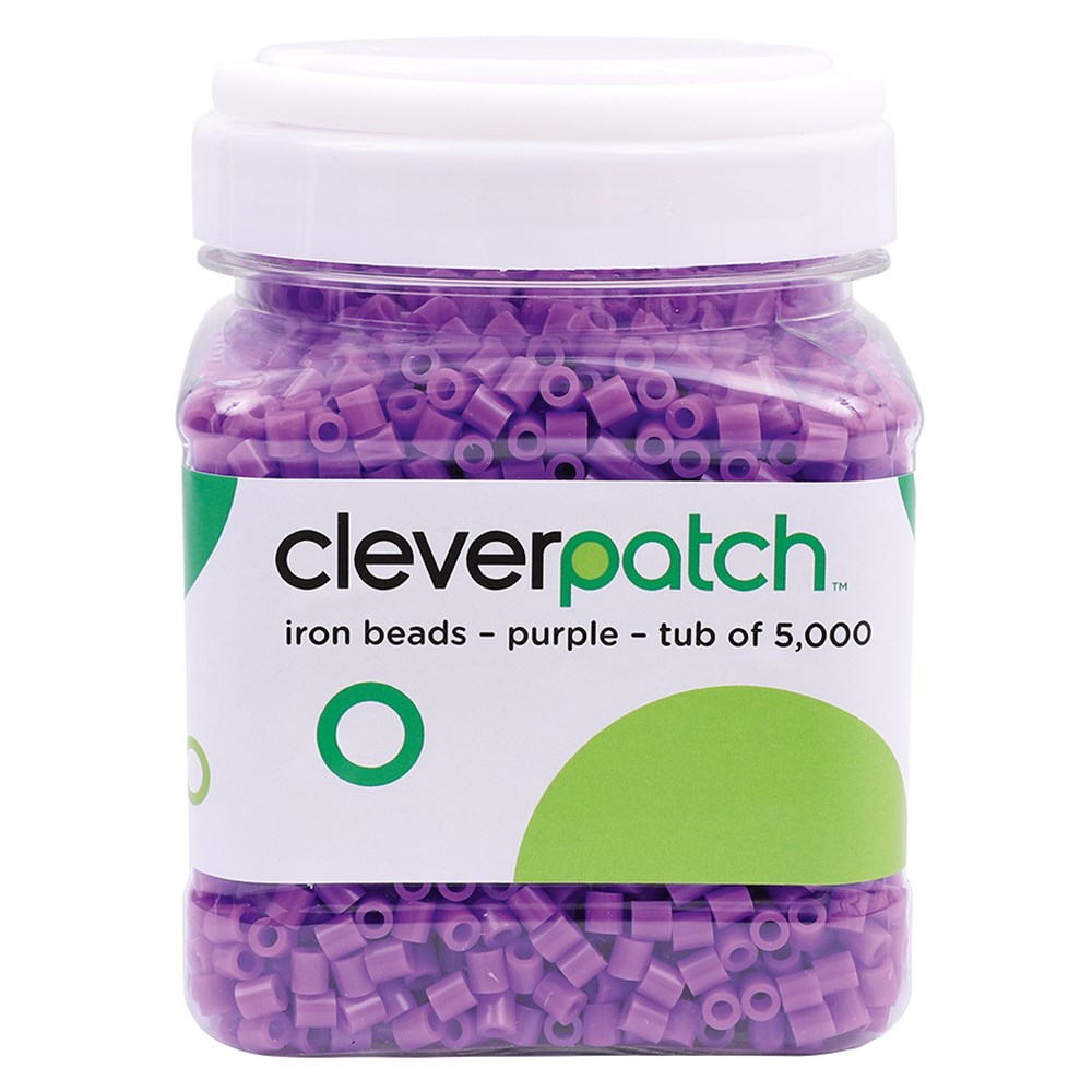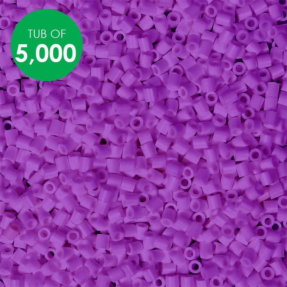 Tub of 5,000 purple iron beads. Storage tub with handle included. Beads measure 5 x 5mm. Available in 10 assorted bright colours. Colour may vary.