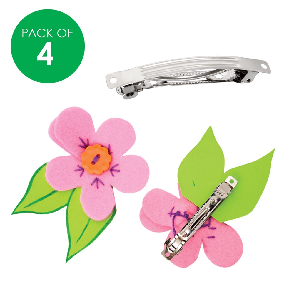 Pack of four push release metal hair clasps ready to be decorated with your crafty creations.
