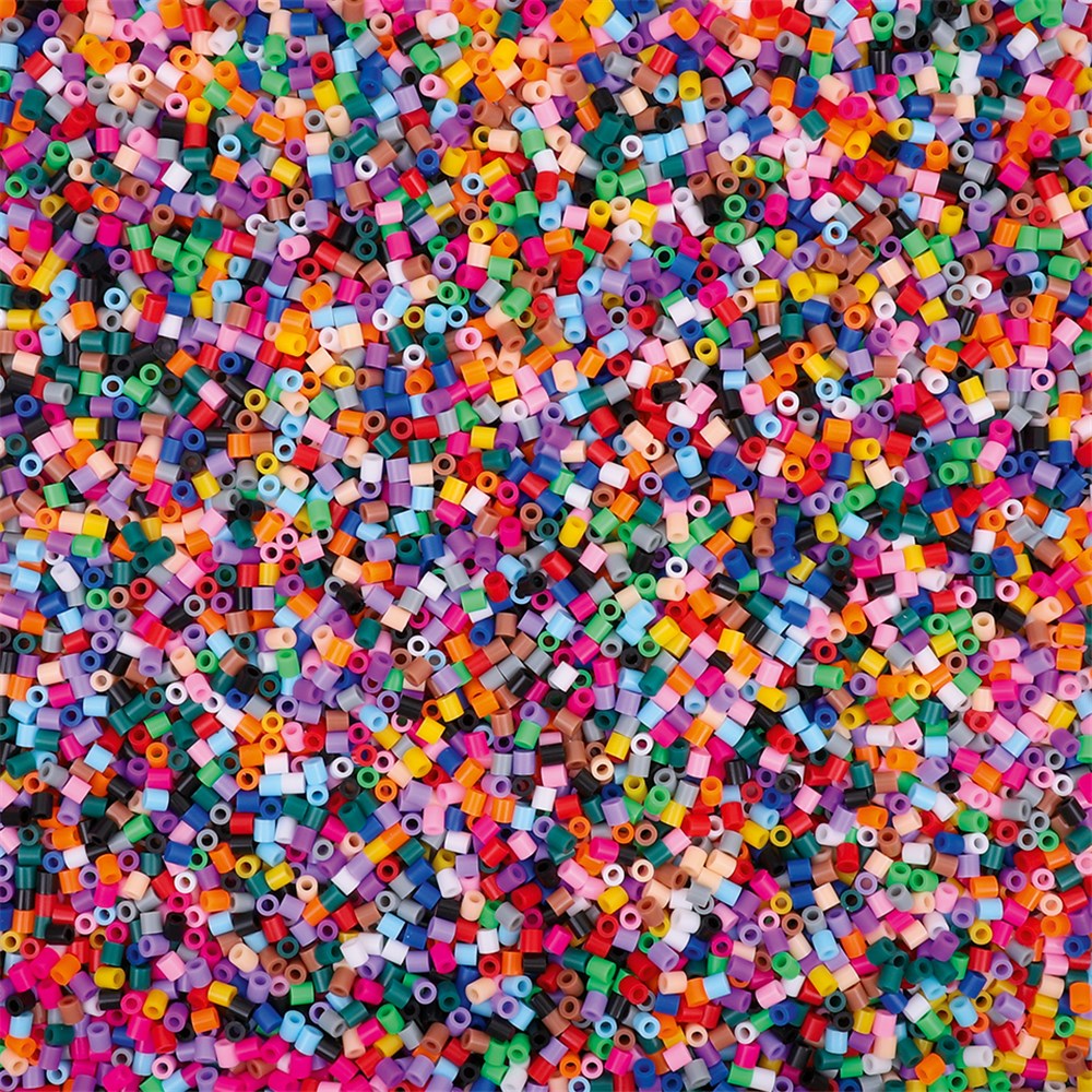 Approximately 13,500 beads in assorted colours. Storage tub included. Each Iron Bead measures approximately 5 x 5mm.