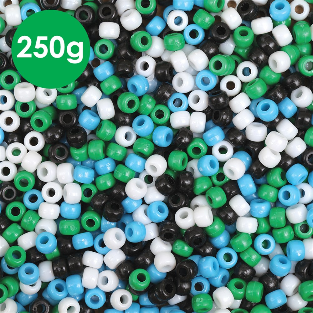 Approximately 2,000 beads in assorted Torres Strait Islands colours. Measures 0.6cm in diameter.
