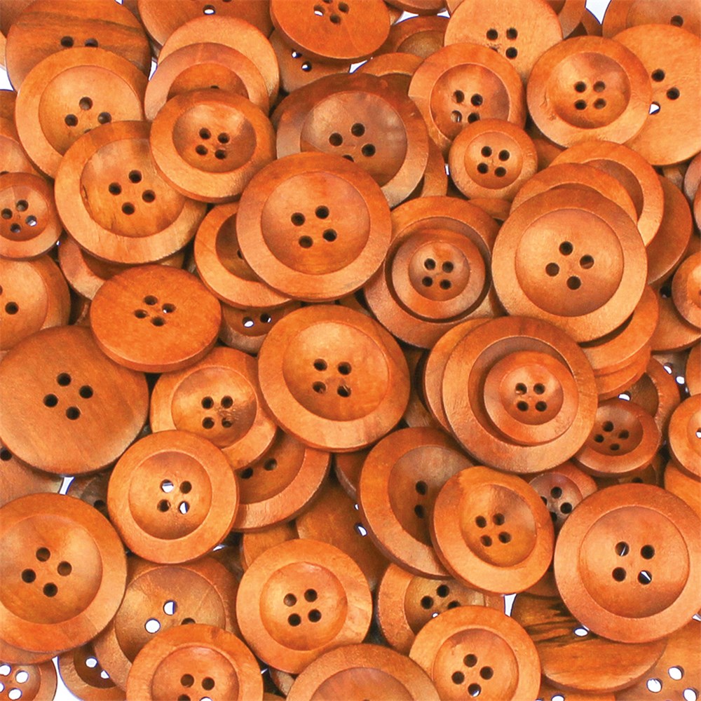 Wooden buttons in 3 assorted sizes. Largest button measures 3cm in diameter. Colours may vary.