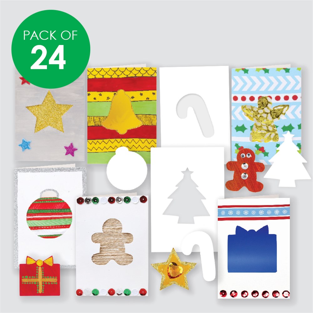 Each pack includes 8 assorted designs. The cards are supplied white for you to create. Envelopes included. Each card measures 10.5 x 15cm when folded. 210gsm board.