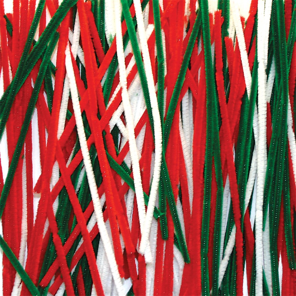 Chenille stems in assorted Christmas colours. Each chenille stem measures 0.5 x 30cm.