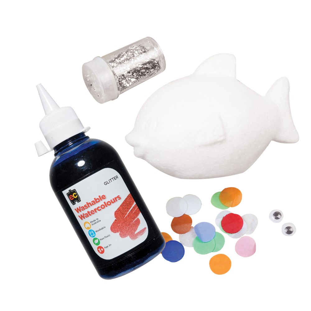 Group pack includes all components required to create and decorate 20 Rainbow Fish. Plain for you to create. Decofoam fish measures 12 x 8cm. Glue and brushes are required to complete this activity (not included). Contents may vary. This activity involves collaboration and sharing.