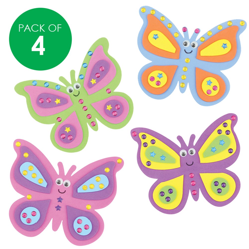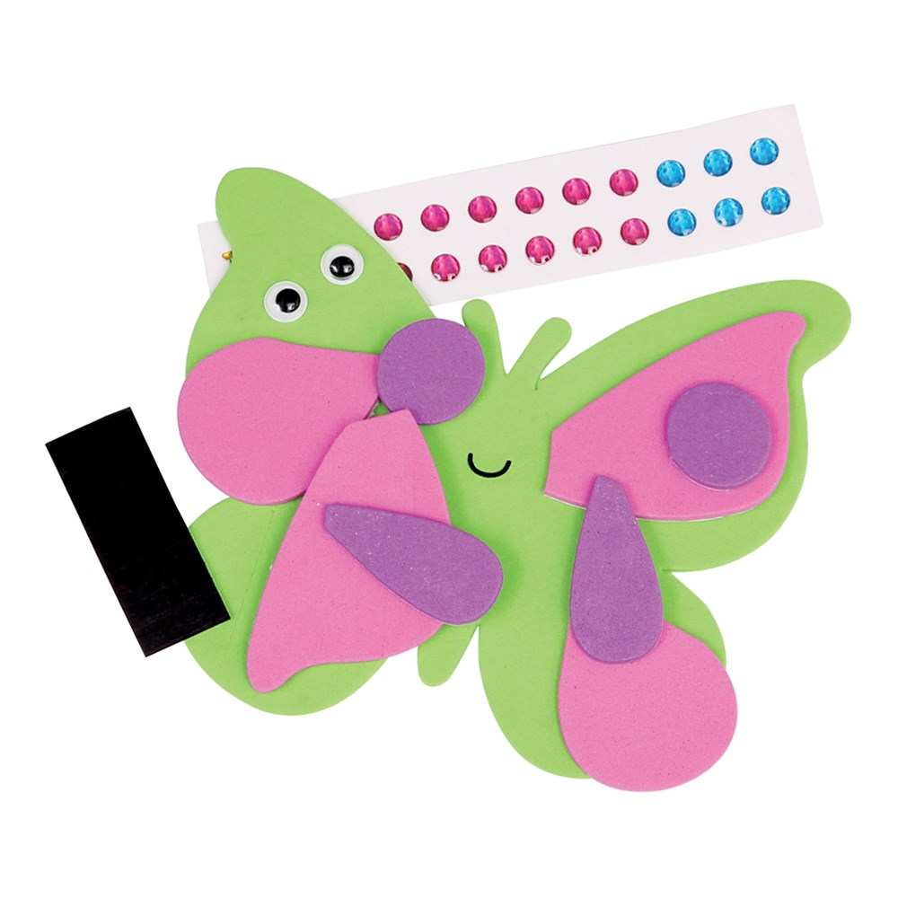Pack includes all components required to create and decorate 4 Butterfly Jewel Magnets. 4 different designs. Each butterfly's pieces are individually packed for easy use. Magnets measure approximately 10 x 8cm when assembled.
